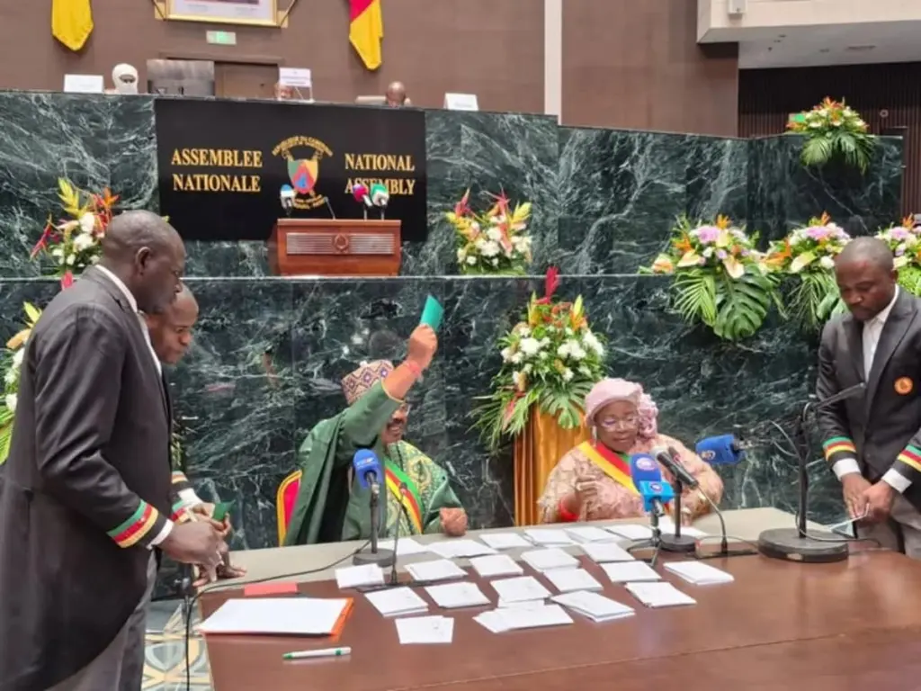 200 der 222 teilnehmenden Parlamentarier stimmten für das Gesetz, 18 votierten dagegen, vier enthielten sich. Kongresspräsident Théodore Datouo erklärte nach der Abstimmung, das Gesetz sei angenommen. Mit der späteren Verkündung durch den Präsidenten werde das Amt des Vizepräsidenten eingerichtet.