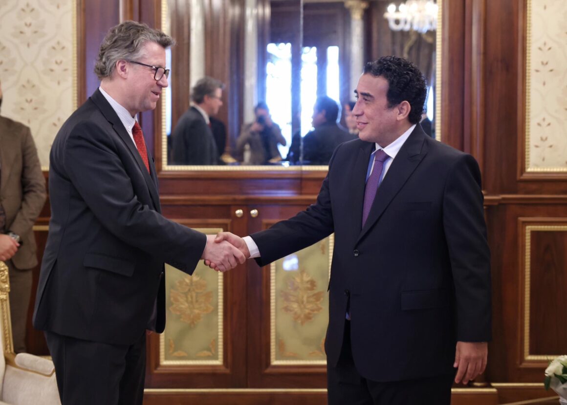 Mohammed Al-Menfi traf in der libyschen Hauptstadt eine Delegation aus Deutschland unter Leitung von Von Geyr. Der Staatsminister übermittelte die Grüße von Bundeskanzler Friedrich Merz und unterstrich die Bereitschaft Deutschlands, die Kooperation und Partnerschaft mit Libyen in verschiedenen Bereichen weiter auszubauen.