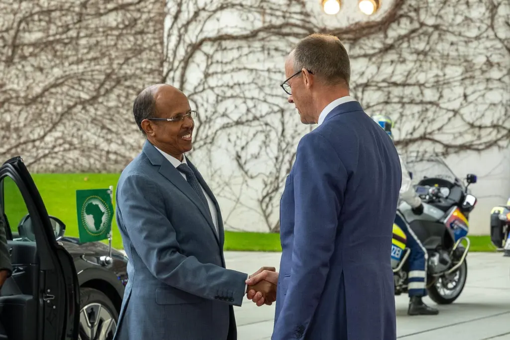 Bundeskanzler Friedrich Merz hat den Vorsitzenden der Kommission der Afrikanischen Union, Mahmoud Ali Youssouf, in Berlin empfangen und der Afrikanischen Union eine stärkere Rolle in den Vereinten Nationen zugesichert. Merz sprach sich dabei für zwei ständige afrikanische Sitze im UN-Sicherheitsrat aus und bezeichnete die AU als strategischen Partner Deutschlands. Das Treffen fand am Dienstagabend im Bundeskanzleramt statt. Im Mittelpunkt standen außerdem der Krieg im Sudan, die Folgen der Krise im Nahen und Mittleren Osten für Afrika sowie die wirtschaftliche und energiepolitische Zusammenarbeit.