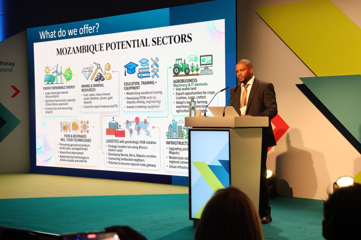 Mosambik hat in Berlin um deutsche Investitionen und neue Wirtschaftspartnerschaften geworben und dabei eine engere Zusammenarbeit mit dem deutschen Mittelstand auf den Weg gebracht. Am 14. und 15. April stellte eine Delegation unter Leitung von Minister Fernando Rafael das Land auf einer Berliner Investitionskonferenz als Standort für Infrastruktur, Energie, Wasser, Wohnen und Digitalisierung vor.