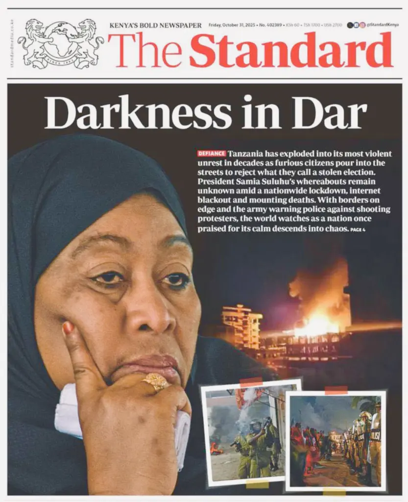 Samia Suluhu has gone silent, her whereabouts unclear. As public fury grows and her portraits burn, chaos grips “peaceful” Tanzania for the 4th day — with no end in sight pic.twitter.com/5MfPk2ZIGD